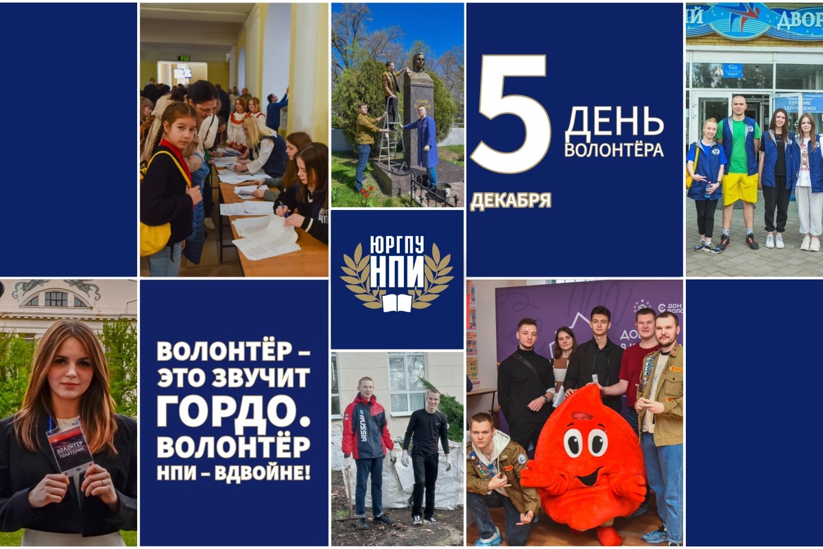 Пятого декабря в России отмечают праздник людей, которые по зову сердца помогают тем, кто нуждается в поддержке и защите, – День волонтёра. Волонтёры совершают добрые дела, принося пользу стране и её жителям. В Новочеркасском политехе всех желающих помогать объединяет Волонтёрский центр. С его помощью неравнодушные студенты творят множество добрых дел: помогают на различных мероприятиях от вузовского до всероссийского уровня; устраивают сборы гуманитарной помощи; участвуют в программе донорства крови; заботятся о природе и решают экологические проблемы; сохраняют историческое наследие. Сейчас в Волонтёрском центре состоят около 1500 человек, ежегодно в их активе – не менее трёхсот добрых дел. Не отстают от молодых политехников и их наставники. Они не только участвуют во внутривузовских активностях, но и помогают городским объединениям. Например, многие преподаватели и сотрудники ЮРГПУ(НПИ) на регулярной основе плетут маскировочные сети и оказывают помощь бойцам специальной военной опе