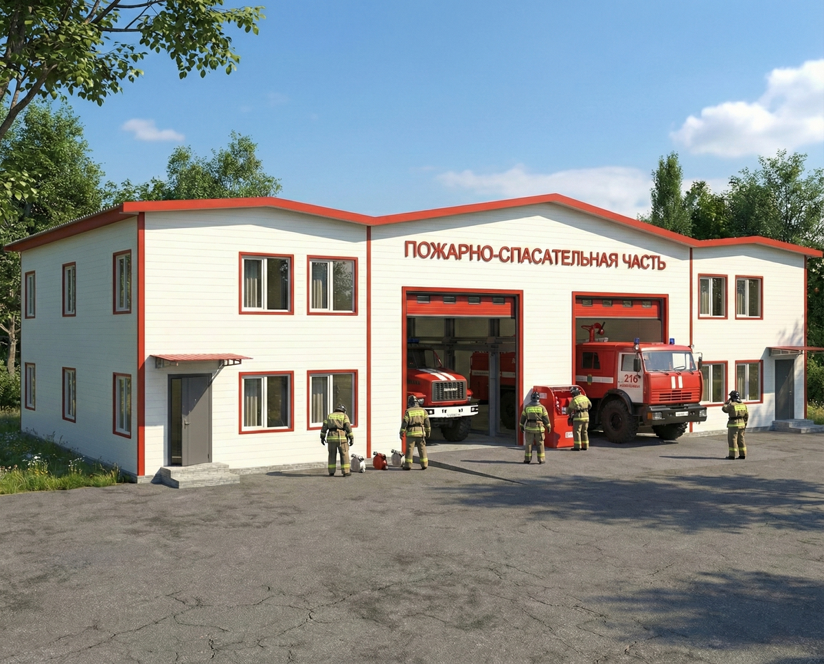 Представьте новый микрорайон или удаленный промышленный объект. Люди заселяются, заводы запускаются, а вопрос безопасности часто упирается в бюрократию и долгострой. Ждать годами капитальное здание пожарной части — непозволительная роскошь, когда речь идет о защите жизни и имущества. Современный ответ на этот вызов — модульные пожарные депо. Что такое модульное пожарное депо? Это готовый комплекс на рельсах Это не временный барак. Это полноценное, технологичное здание, собранное из готовых блок-модулей, произведенных в заводских условиях. Каждый модуль — часть будущего депо: гараж для техники, командный пункт, комнаты отдыха личного состава, душевые, склады для оборудования. Их доставляют на место и в короткие сроки собирают в единый комплекс, готовый к эксплуатации. Ключевые преимущества: Скорость, мобильность, надежность 1. Экстремальная скорость развертывания.