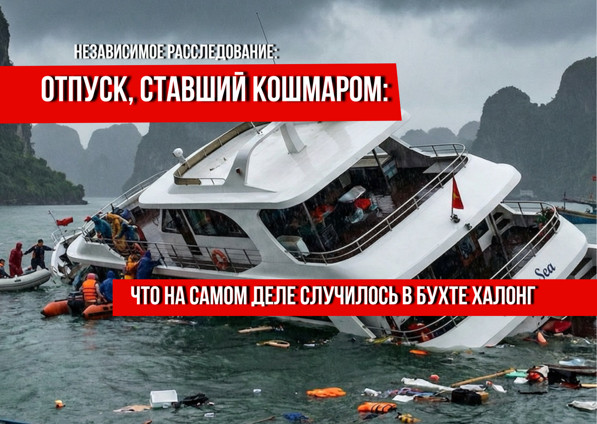 Слушайте, то, что произошло во Вьетнаме этим летом, просто не укладывается в голове. Мы привыкли думать о бухте Халонг как о рае с картинки: изумрудная вода, скалы, лодочки... Но 20 июля 2025 года этот рай превратился в настоящий ад для десятков семей. Я собрал всё, что известно на данный момент, не из сухих отчетов, а из того, что говорят выжившие и местные. «Небо почернело за секунду» Представьте: суббота, 19 июля. Обычный жаркий день, люди (в основном местные вьетнамские семьи из Ханоя) поехали отдыхать. На часах около часу дня. Туристический катер «Wonder Sea» (по документам он проходит как «Vinh Xanh 58», бортовой номер QN-7105) везет 53 человека смотреть пещеры. Всё было нормально. Метеорологи обещали ясное небо. Но в районе двух часов дня погода буквально взбесилась. Налетел шквал — это называется «внезапная гроза». Один из выживших, мужчина по имени Данг Ань Туан, рассказывал потом журналистам: небо просто рухнуло на них. Ветер и волны ударили по судну с такой силой, что он