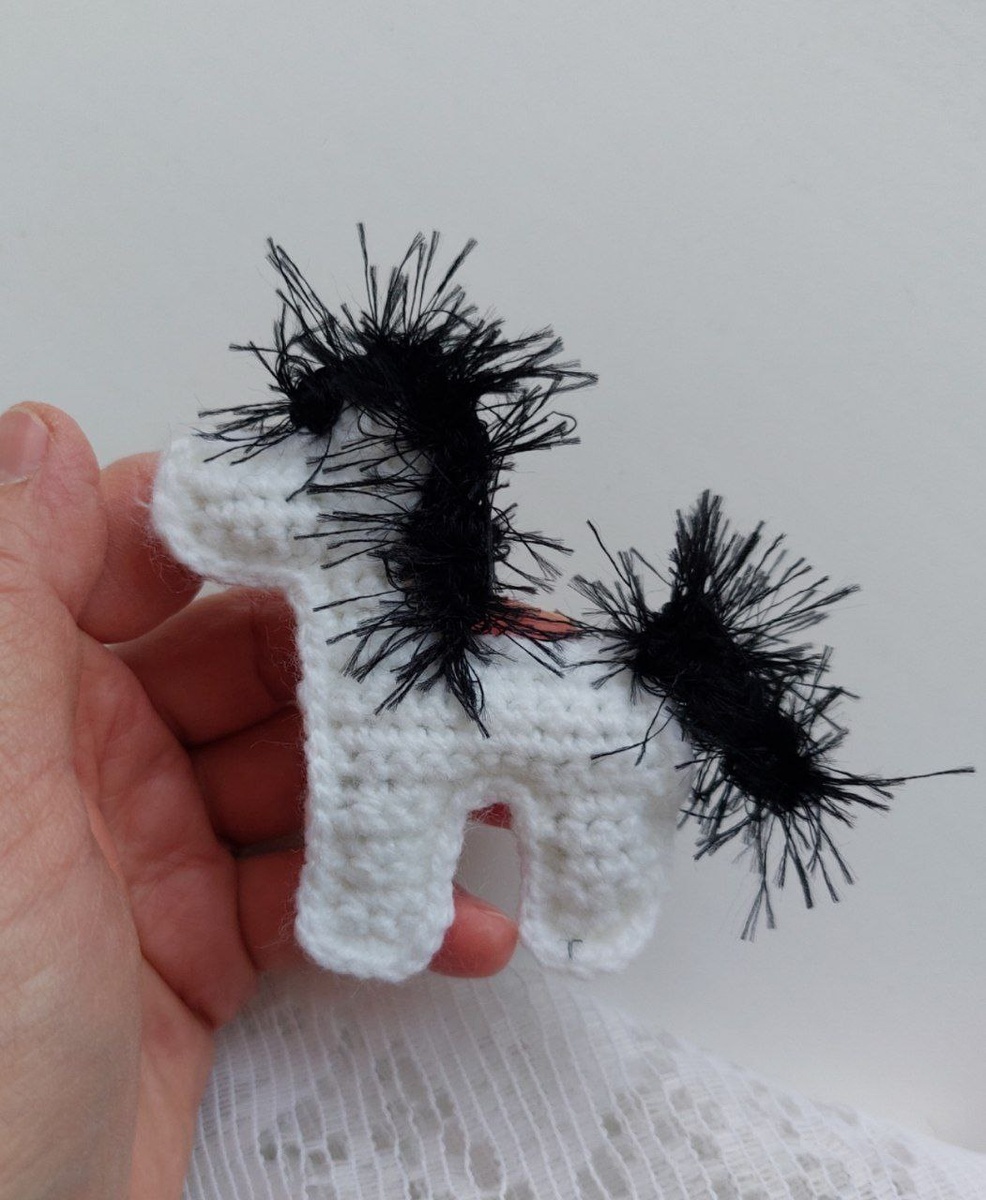 Нашла схему по вязанию лошадки из двух деталей. Такая белая у меня получилась. Грива и хвост из пряжи травка.