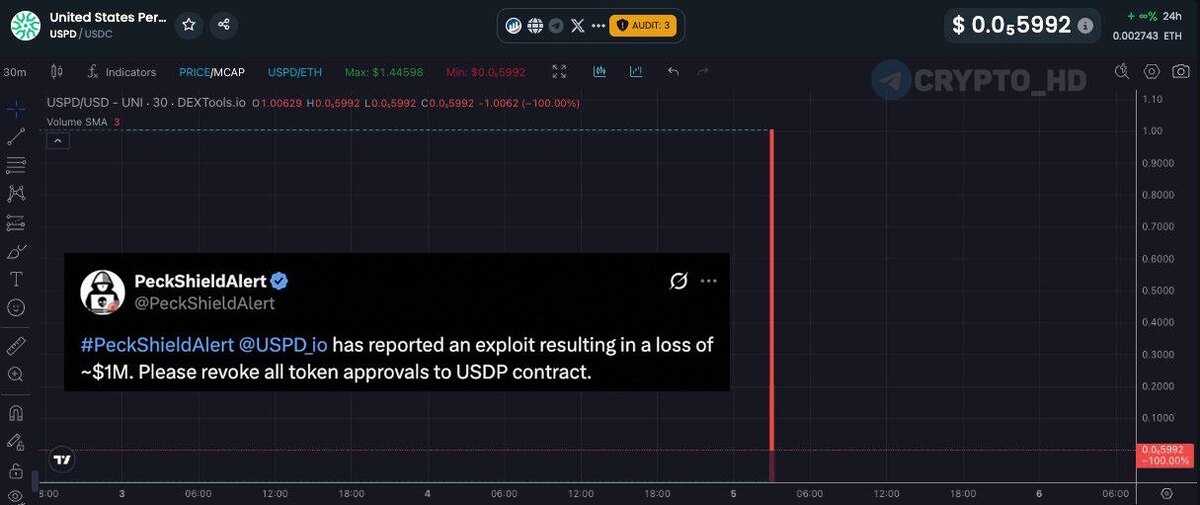 #взлом ❌ PeckShield: Хакеры взломали проект #USPD на $1,000,000. Crypto Headlines