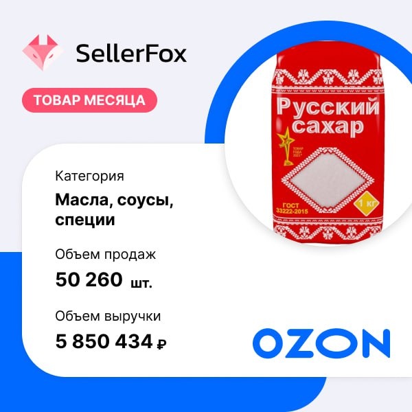 Щепотка щедрости. Сахар российского производителя стал лидером по количеству продаж в продуктовой категории "Масла, соусы, специи". Упаковку приобрели более 50 тысяч раз на общую сумму свыше 5,8 млн рублей. Не исключено, что вскоре в категории "Продукты" на Ozon станет куда больше специй из Индии. Вице-президент по взаимодействию с органами государственной власти Ozon Дмитрий Ким рассказал о высоком спросе покупателей на индийские товары. На маркетплейсе, по данным Кима, представлено более 400 млн товаров. «При этом товары, закупленные нашими продавцами для продаж и произведенные на территории Индии, составляют более 1 млн товарных позиций, и рост год к году составил 46%. То есть спрос на индийские товары среди наших потребителей достаточно высокий», — заявил Ким. Ozon приглашает индийские фирмы к дополнительному сотрудничеству, поскольку видит высокий потенциал.
