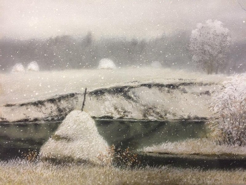 Сыплет густо, крупными хлопьями... Бережно и нежно укрывает все вокруг: луга со стоящими на них снопами, крутые берега реки, отдаленный лесок. Пройдет совсем немного времени, и все вокруг станет белым-белым... И такая тишина вокруг. А в душе покой и умиротворение.