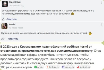 Выложил на форуме пост про колбасу и нитриты и наприлетало однотипных сообщений