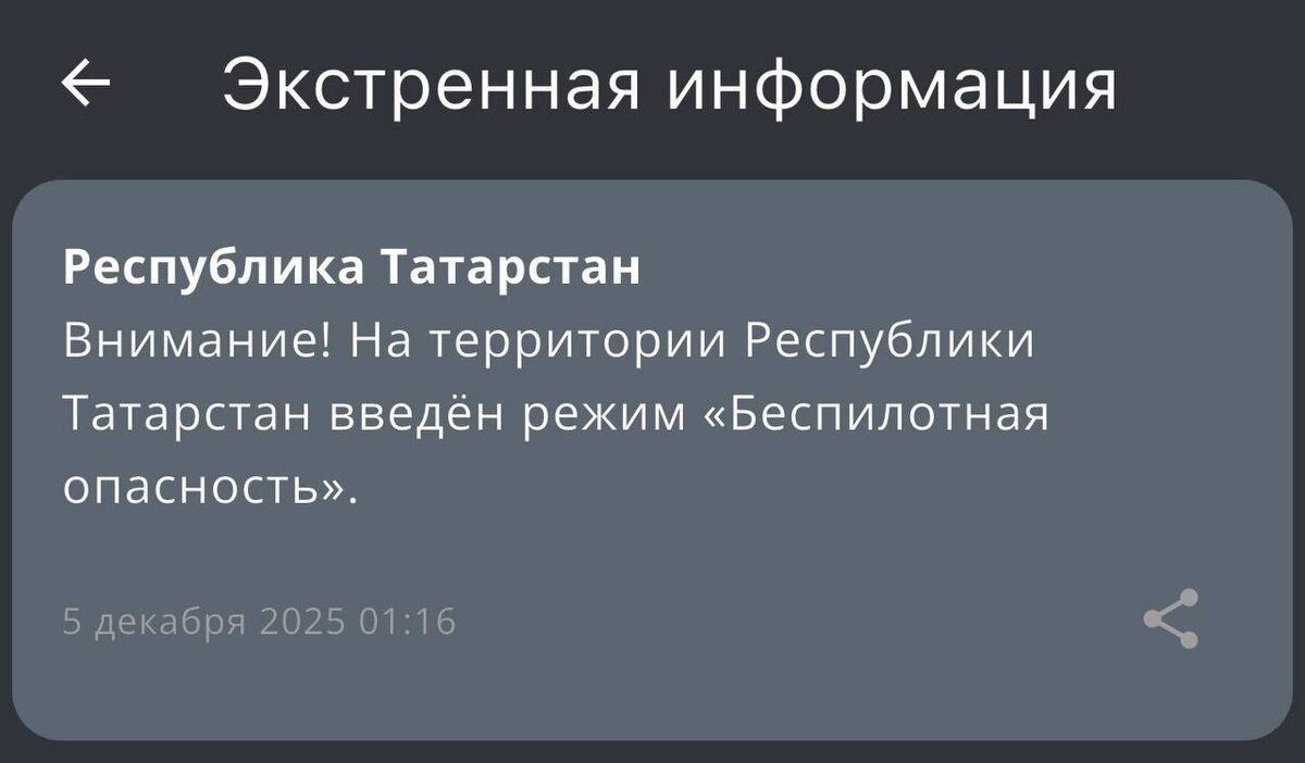 В Татарстане с 01:15 действует режим «Беспилотная опасность».