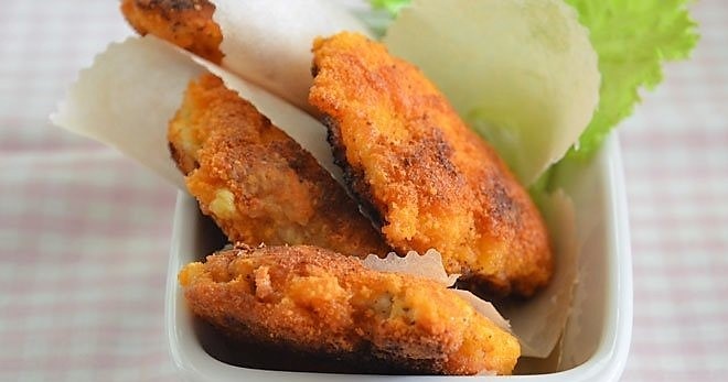 -Два зубчика чеснока. -Соль по вкусу. -Масло растительное. Приготовление. Сначала будем готовить кляр, для этого в стакан для блендера: -Разбиваем яйцо. -Выдавливаем чеснокодавкой чеснок (можно просто мелко порезать). -Солим по вкусу. -Добавляем немного майонеза. Всё эт