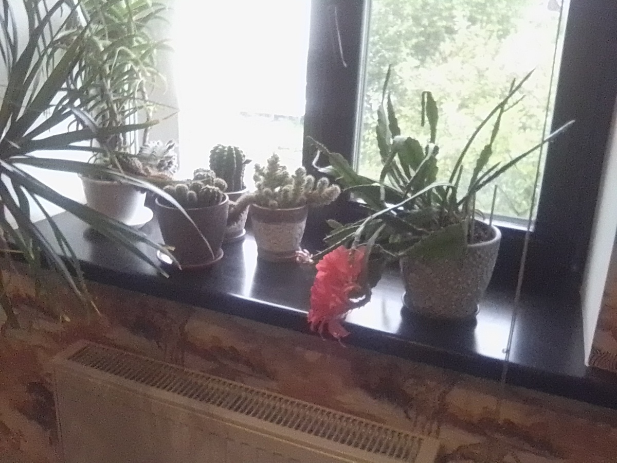 Поймите меня правильно, я очень толерантно отношусь к комнатным цветам, не сказать, что прям их люблю, но…. Что-то их у нас в доме стало слишком много. Так и не понял: то ли я живу в оранжерее, то ли растения квартируют в моем доме. Хорошо ещё, что нет у нас растения под интригующим названием «мужегон». Кто не знает, это растение обильно распускает свои "руки" там, где царствуют женщины. А вот есть у супруги очень редкий кактус - эпифиллум розовый, который на днях зацвел Ну, скажите, что не чудо!! Событие, по её мнению, эпохальное и, поэтому, фото этого цветущего кактуса было разослано всем родным и знакомым. Скажу сразу, я не сторонник такого обилия комнатных растений в доме. Да что там, в доме, даже в гараже (моем гараже!!)) они довольно уютно себя чувствуют. Вот такие соседи на гаражнос окне: цветы и различные очистители для авто)) А хотите узнать, сколько в нашем доме горшков с разными цветами, растениями и кактусами? Ну, для начала, хотя бы назову те, которые знаю. Итак: какту
