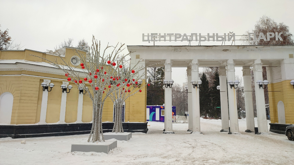 Здесь же в Центральном парке находится главный каток. Его то на самой площади Ленина устраивали, то прямо перед Оперным театром, то вот решили залить его чуть в стороне от центра города, но буквально в двухстах метрах от него. Музыка звучит, несколько человек катаются, настроение вполне новогоднее ☺️