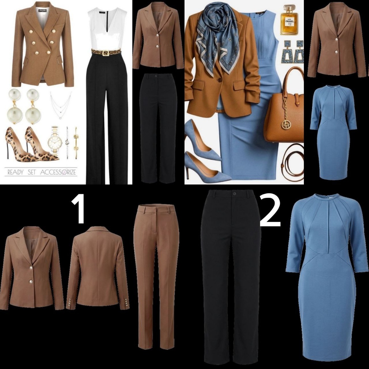 Выберите. Что больше откликается? Один костюм: два образа и две стороны вас. Бежевый костюм — не просто вещь. Это ключ к вашей уверенности. 1️⃣ Образ 1: Классика с характером Бежевый жакет + чёрные брюки = ваша сила, чёткость. Лаконизм. 2️⃣Образ 2: Элегантность. Жакет + небесное платье. Глубина, грация, ваша тихая роскошь. Оба образа — не про тренды. А про то, как вы чувствуете себя в них. Осталось выбрать — чего не хватает вам?