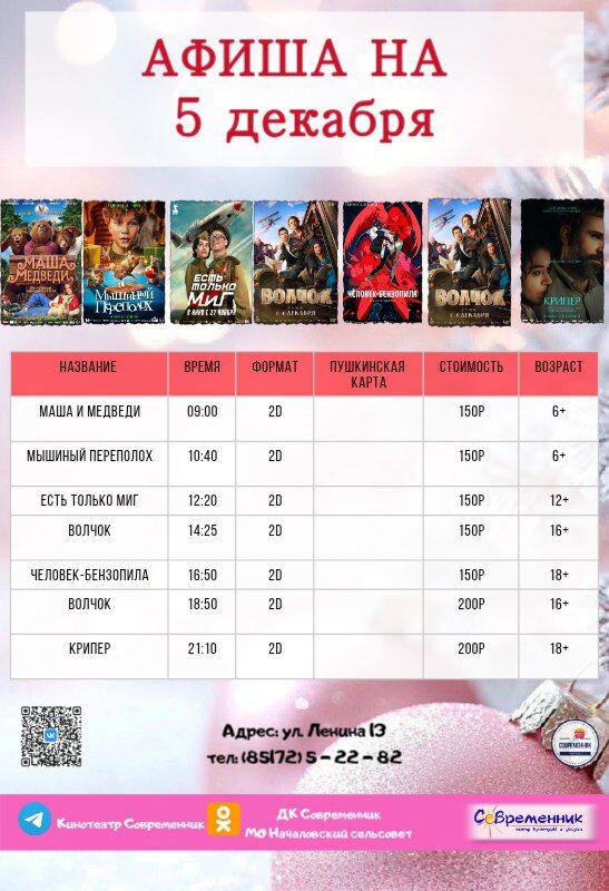 Друзья, делимся с вами афишей кино на выходные Зачем далеко ходить?🤔 🍿В ДК Современник села Началово показывают новинки фильмов! #Приволжскийрайон #Культурныевыходные