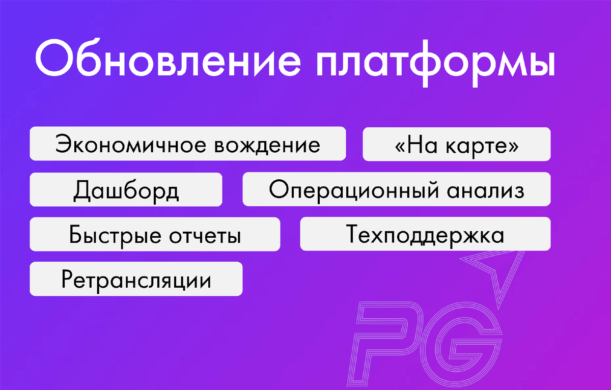 Улучшили: Экономичное вождение, Сервис "На карте", Дашборд, Операционный анализ, Быстрые отчёты, Техподдержку и Ретрансляции ✔️ 🚗 Экономичное вождение 💥 Добавили подраздел "Мотивация" (beta) для управления начислением бонусов в соответствии с полученными оценками водителей. Подробнее об этом — в следующем посте. На странице детализации ТС/водителя: 🔹 в категории "Двигатель" добавили группу параметров "Педаль акселератора" — процентное распределение степени нажатия на педаль акселератора 🔹 в категории "Двигатель" в группе параметров "Обороты двигателя" исправили ошибку отображения параметра "Пробег на оборотах более 2000 оборотов с подачей топлива" 🔹 в категории "Круиз-контроль" добавили параметр "Норматив эффективного КК (минимум)" — рекомендуемое значение показателя "Эффективный круиз-контроль" (в км. и %) при текущем значении показателя "Горы, м./100 км". 🔹 добавили диаграмму "Паутина" с графическим отображением оценок ТС/водителя, колонны и компании (при их выборе в селекторе