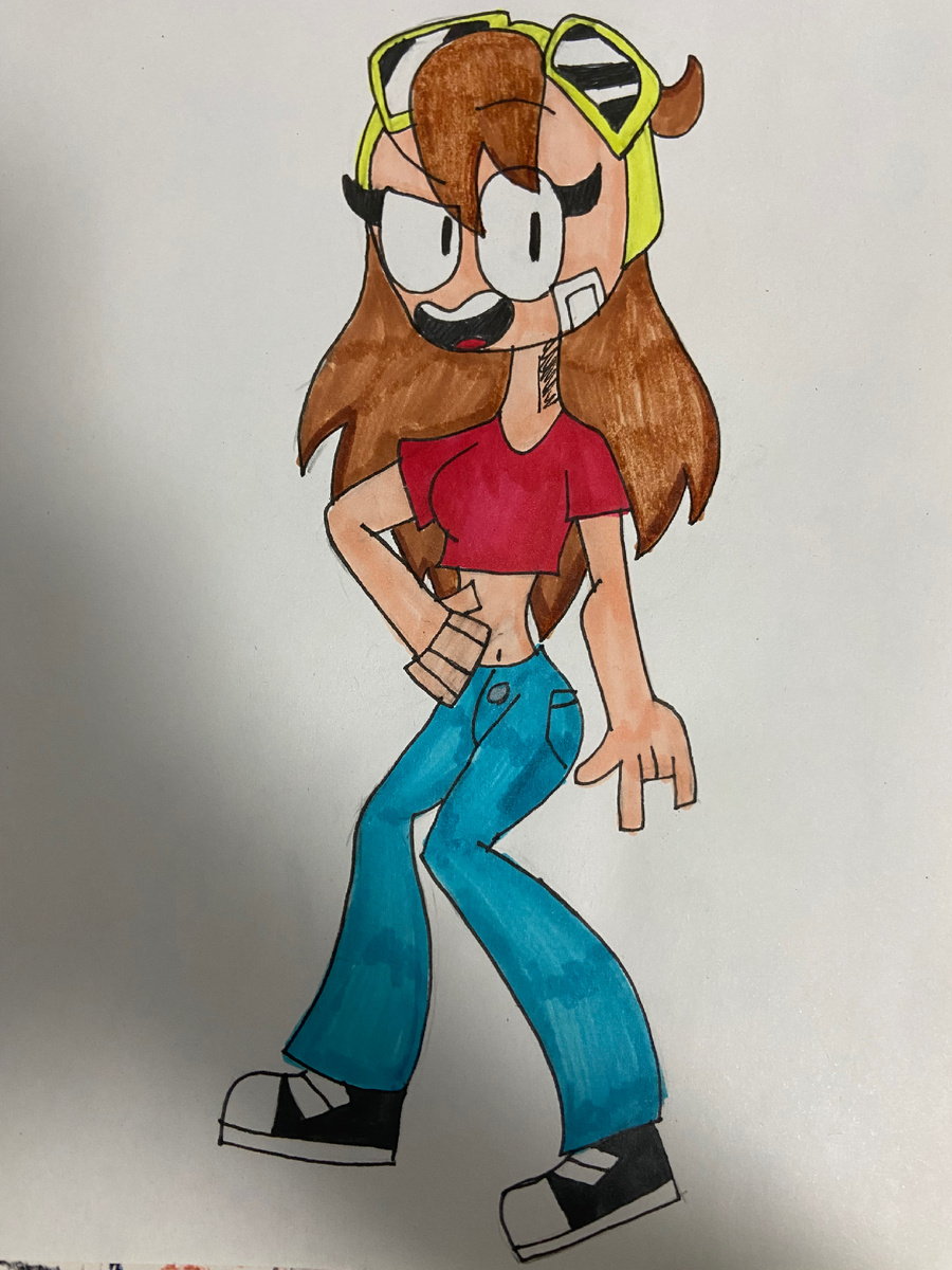 решила нарисовать свою Ос в подростковом возрасте. После подростков из Мира Эда. Я захотела добавить Люду. Люда 14.5 лет девушка она/ее помогает когда нужно и когда не нужно пацанка не женственна но и не слишком жесткая. любит спортивные образы (чем платья и туфли. Она ненавидит юбки и платья) угощает героев колой и сендвичами с рыбой. защищает ( в особенности пацанов) ЛД- Торд , Том, Эд, Мэтт порой задирается чаще всего ее можно встретить на турниках. Ее атрибуты : Липтон Очки летчика набор пластырей Иногда рисует. Хочет быть рестлершей испытывает отвращение к Хентаю.