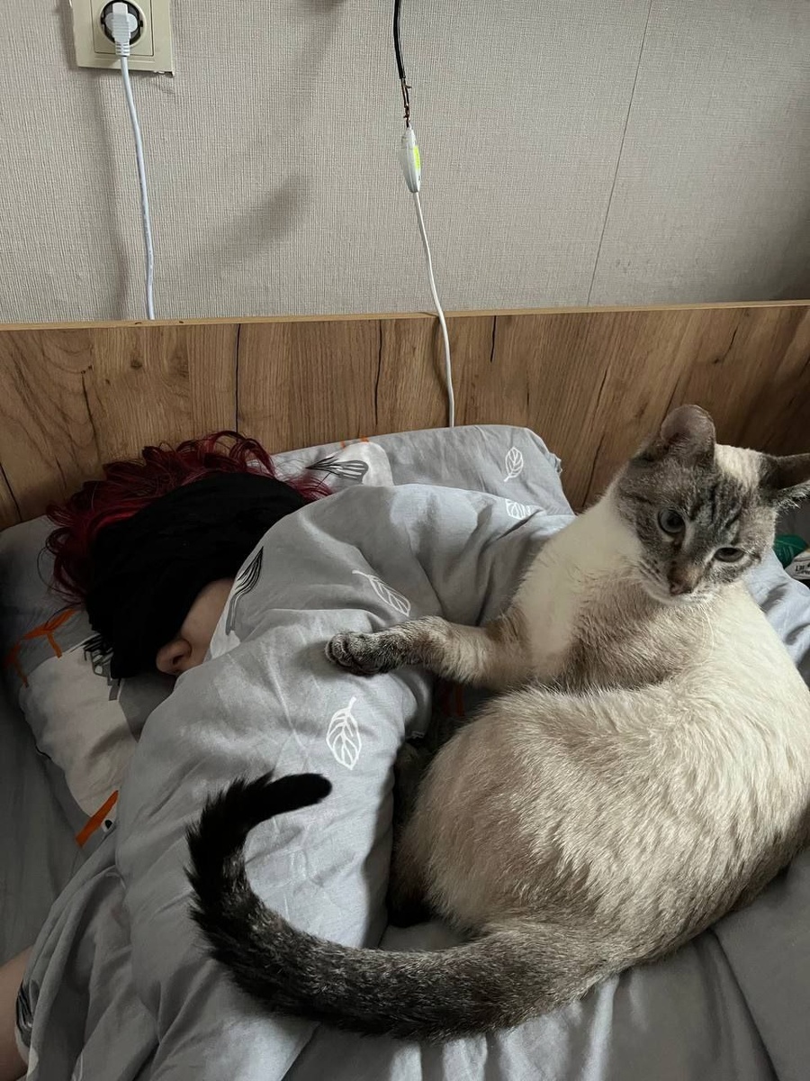 Шпите? А вот вам и доброе утро!!! из новостей по Айсу 1) попытался доесть мой суп, стырил фрикадельку, совести никакой нет 2) была практически совершена нападка на кекс, увы кекс у бедного кота отобрали #айс