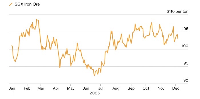 Цены на железную руду снижаются на фоне признаков сезонного ослабления рынка стали. Кроме того, рынок ждет итогов съезда в Китае, на котором будут определены ключевые направления экономической политики. Цены на железную руду. Источник: Bloomberg Фьючерсы на этот основной компонент для производства стали упали на 1,4%. Еженедельные данные от Mysteel показали, что загрузка мощностей и суточный выпуск чугуна на опрошенных металлургических комбинатах снизились, что указывает на начало традиционного предновогоднего замедления. Коэффициент загрузки доменных печей также упал. «Цены на железную руду остаются под давлением из-за ослабления фундаментальных факторов, — заявили в четверг аналитики Mysteel. — На стороне предложения, австралийские горнодобывающие компании обычно наращивают отгрузки в декабре, чтобы выполнить годовые или полугодовые планы, поэтому ожидается, что мировые объемы поставок руды в этом месяце значительно вырастут». Запасы железной руды в китайских портах также приближаютс