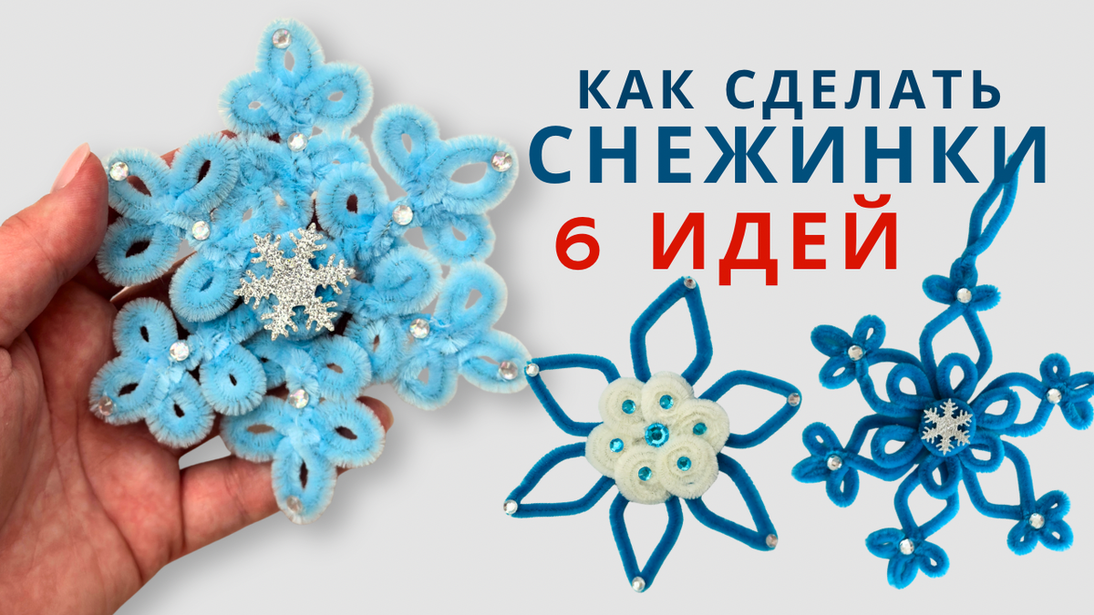 Хочу показать вам коллекцию из шести снежинок из синельной проволоки — это идеальные зимние поделки, которые подойдут и детям, и взрослым. Такие снежинки легко сделать дома, в школе или на занятиях творчеством, а смотрятся они как готовый дизайнерский новогодний декор. Если вы искали, какую снежинку своими руками сделать быстро и красиво — эти варианты станут настоящим спасением. Полные видео мастер-классы как сделать все снежинки смотрите в нашем телеграм-канале @SinelkaArt. 6 идей снежинок своими руками 1. Голубая пушистая снежинка — лёгкая зимняя поделка для детей Объёмная, аккуратная, с красивой серединкой. Отличный вариант, если нужны быстрые новогодние поделки своими руками. 2. Ажурная снежинка с длинными лучами — стильный новогодний декор Эта снежинка получается изящной, словно ледяной узор. Подходит как украшение на ёлку, гирлянду или подарок. 3. Трехцветная снежинка из синельной проволоки — эффект градиента Один из самых популярных вариантов в DIY снежинках. Бело-голубой