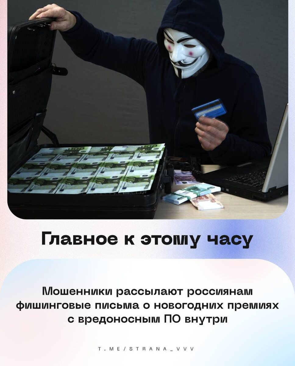 🇷🇺🇷🇺🇷🇺🇷🇺🇷🇺🇷🇺 на утро 5 декабря: 🔹Мошенники рассылают россиянам фишинговые письма о новогодних премиях с вредоносным ПО внутри. 🔹Бутерброд с натуральной красной икрой в России за год подорожал на 13% — с 969 до 1090 рублей — результаты исследования маркетплейса «Сравни». 🔹Уголовный кодекс стоит дополнить понятием «психическое насилие» и признать его отягчающим обстоятельством — депутат Владимир Кошелев. 🔹2025 год войдет в тройку самых теплых за всю историю — Гидрометцентр. 🔹Регистрация в квартире Ларисы Долиной ее дочери и внучки не является препятствием для возможного решения в пользу Полины Лурье в деле о продаже спорной недвижимости — адвокат Иван Миронов. 💰Курсы валют: доллар — 📉76,97; евро — 📉89,90; юань — 📉10,85. ✅ «В Стране» в MAX