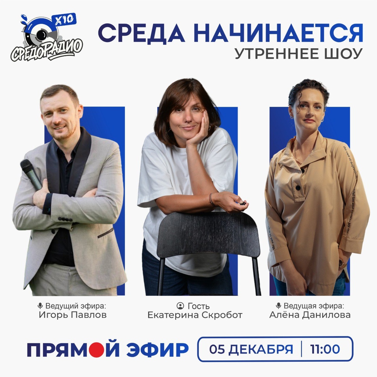 🎉 ПЯТНИЦА НА СРЕДОРАДИО — ДЕНЬ, КОТОРЫЙ НЕЛЬЗЯ ПРОПУСТИТЬ! Потому что 05 декабря в утреннее шоу «Среда начинается» к Игорю Павлову и Алёне Даниловой приходит гостья ✨ Екатерина Скробот Генеральный директор Фонда «ПРО Женщин»! Да-да! Та самая Екатерина, чей августовский эфир покорил эфирную среду ясностью, глубиной и невероятной включённостью. И сейчас — продолжение. Более зрелое. Более масштабное. Более важное. Этот разговор — как встретиться с наставницей, подругой и визионером одновременно. Это будет честно. Вдохновляюще. И, как умеем мы в СРЕДОРАДИО — с теплом, юмором и живой вибрацией утра. 📣 Пятница, 05 декабря, 11:00 (мск) Утро, которое запускает движение. Эфир: https://myradio24.com/5559 📱 MyRadio24: https://dzen.ru/media/sredoradio/-68945075272f5b1d26ed07e3 Телеграм: https://dzen.ru/id/68347b0544414e3a879796a0 ВК: vk.com/sredoradio Приходите слушать. И приходите чувствовать. Это будет сильно. 💛