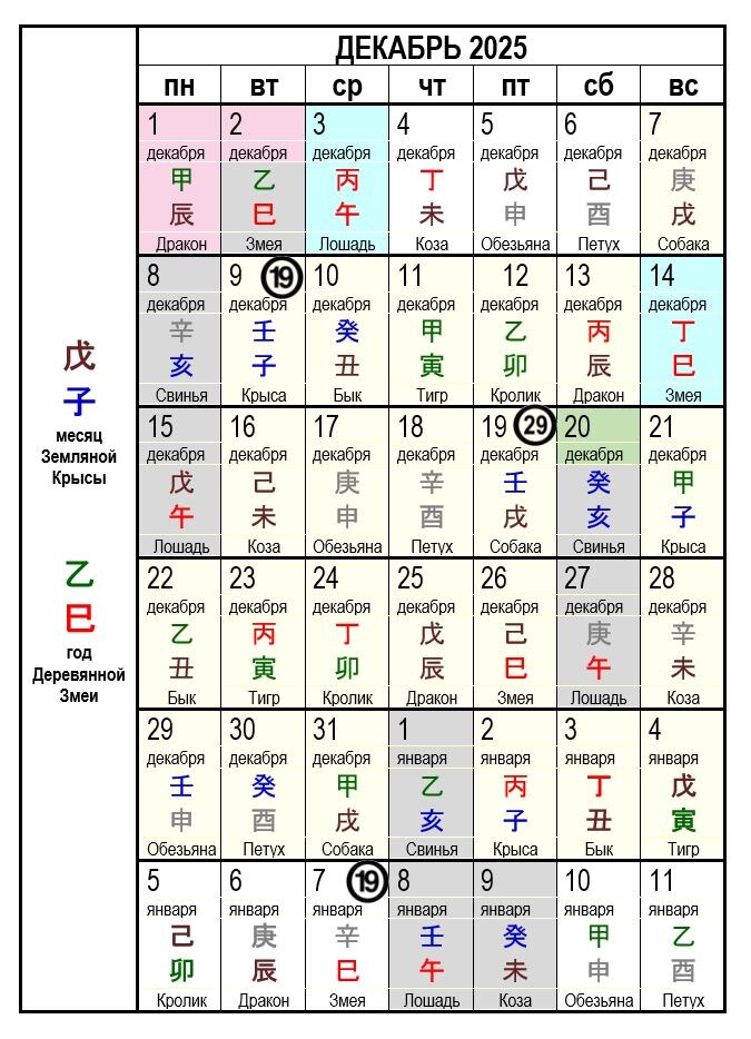 Календарь Разрушителей на ДЕКАБРЬ - месяц Земляной Крысы (с 7 декабря по 4 января) ЗАЧЕМ НУЖЕН КАЛЕНДАРЬ РАЗРУШИТЕЛЕЙ? 🟡 ЖЁЛТЫМ – выделен текущий месяц ⚪️ СЕРЫМ - выделены ДНИ ОБЩИХ РАЗРУШИТЕЛЕЙ 🟣 РОЗОВЫМ – выделены ДНИ БЕЗ БОГАТСТВА 🔵 ГОЛУБЫМ – выделены ДНИ ПОТЕРЬ 🟢 ЗЕЛЕНЫМ – выделен ДЕНЬ РАЗДЕЛЕНИЯ или ИСТОЩЕНИЯ ⚫️ 19 и 29 лунные дни - выделены кружками с числом 🌑☀️ Лунное и Солнечное затмения В дни ОБЩИХ РАЗРУШИТЕЛЕЙ не назначайте важных дел, в такие дни повышена конфликтность, травматизм. Также лучше не посещать мест скопления людей Дни БЕЗ БОГАТСТВА – не начинать любые дела связанное с деньгами и прибылью. Не проводите презентации, не подписывайте договора и не заключайте сделки Дни ПОТЕРЬ – не назначайте важных дел, просто потеряете время День РАЗДЕЛЕНИЯ – в этом дне мало энергии, она устаревшая, поэтому он не подходит для важных дел. Особенно неудачен для свадьбы, переезда, перестановок в спальне, так как могут пострадать отношения День ИСТОЩЕНИЯ - не подходит для дел,