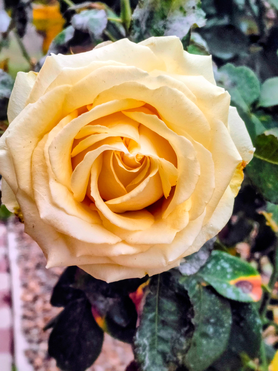 Прибыли на участок, который "Саперы" обслуживают три года подряд. За это время происходила формировка деревьев, но стричь их сегодня надо щадящим вариантом с упором на большое количество плодов. Добрый день, уважаемые! Усаживайтесь поудобнее, мы начинаем. А "Саперы", это мы, Анастасия — основатель, я — помощник. Пока раскачиваемся, любуюсь розами. Кусты высокие, аромат стоит невероятный! Ого, только сейчас обнаружила на фото с красными розами тлю. На бутоне справа сидит. Ладно, розы понюхали, посмаковали их глазками, берём острый инструмент в нежные, но сильные ручки и уверенно приближаемся к дереву. Сразу видно фронт работы. Хочется обрезать больше, но нельзя! Не все это любят. Особенно после весенних заморозков в момент образования плодов многие потеряли урожай. Оголодали, и каждый борется теперь за урожай. Плодушки на веточках видно, их оставляем, убираем ветки, которые явно растут внутрь, понижаем деревья, чтобы не искать плоды где-то там в небесах и немного прорежаем