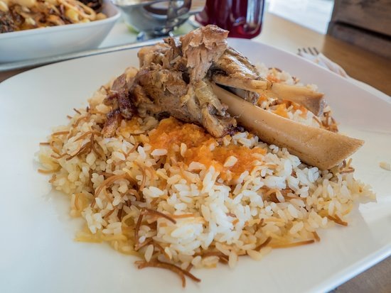 Это национальное блюдо Египта — праздничное блюдо из подсушенного риса, хрустящего чеснока, уксусного соуса и кусочков баранины или говядины. В отличие от плова, фатта не содержит специй, изюма или орехов, а ключевой элемент — дука (хрустящий чеснок в масле) и хилба (уксусно-чесночная заливка). Главное: рис должен быть поджарен до золотистости перед варкой, хлеб — свежий айш балади, нарезанный кубиками и слегка подсушенный. Подается слоями, но перемешивается перед едой. Ингредиенты (на 4 порции): Рис круглозёрный — 300 г Хлеб айш балади (или плотный лаваш/чёрный хлеб) — 200 г Баранина (рёбра или лопатка) — 600 г Чеснок — 8 зубчиков Уксус белый — 3 ст. ложки Соль — 1,5 ч. ложки Растительное масло — 5 ст. ложек Вода — 600 мл Шаги: Приготовь мясо: Баранину отвари в подсолёной воде 1,5 часа до мягкости. Бульон процеди — должен быть ~600 мл. Мясо отделить от костей, нарезать кусочками. Подготовь рис и хлеб: Рис промой, обсушить, обжарь в 2 ст. ложках масла до золотистого оттенка. Влей буль