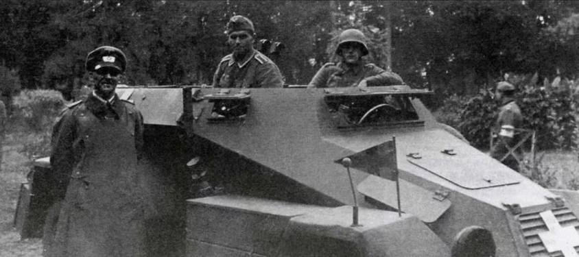 1 вездеходный тяжелый бронеавтомобиль Sd.Kfz.247, с 1 пистолетом-пулеметом.