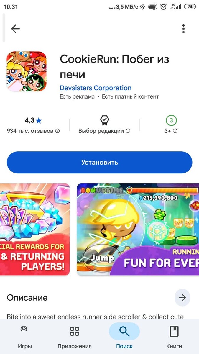 Да задолбали вы меня уже с этим Куки раном! Он ваще-то стоимостью большей памяти - ПОЛТОРА ГИГАБАЙТ! Чтобы как раз поиграться с этернал щугар и другими Mr. Beast, то трать свой маленький островок памяти и больше ничего не фоткай кроме игры в кукеран. Да я ваще не играю в куки ран т.к. он уже не тот. И вам не советую.