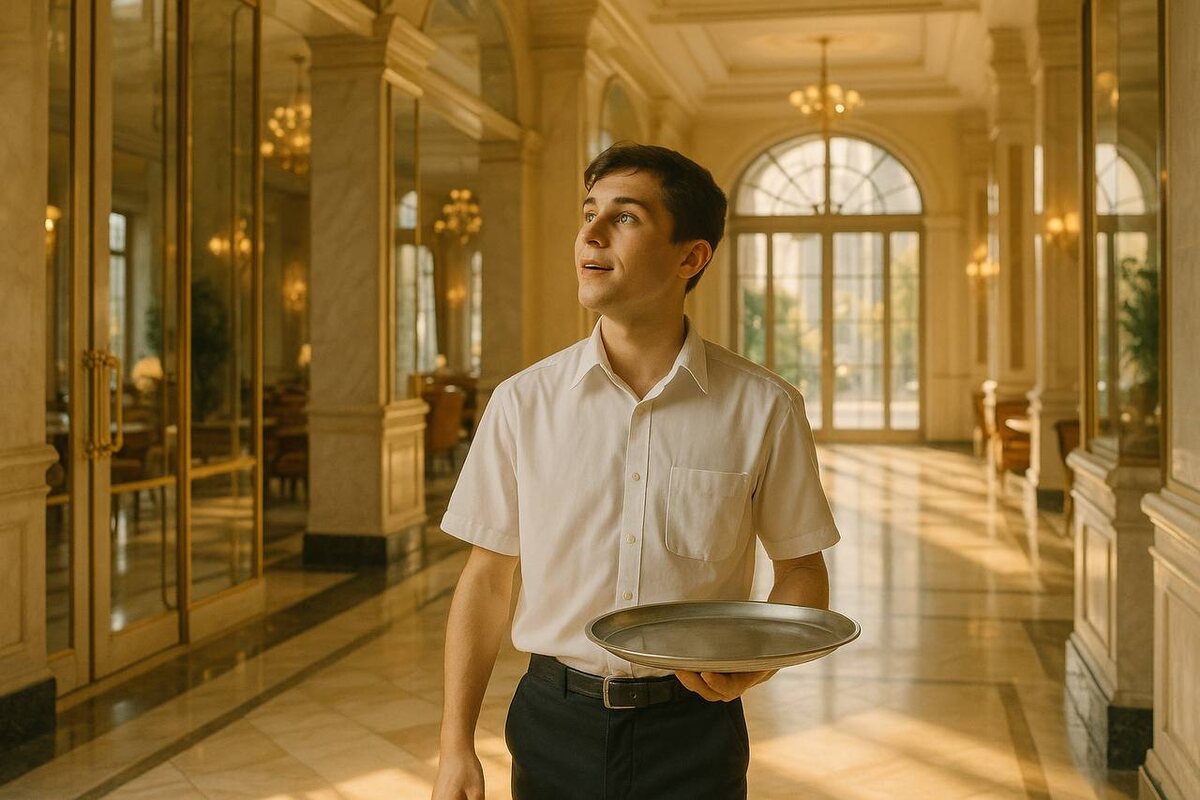В предыдущей серии В предыдущей серии рассказал, как стал помощником официанта в ресторане отеля, как получил первый опыт общения с иностранцами и как решительным образом настроился стать официантом … Возвращение в лобби — но уже с другой ролью Однажды после завтрака меня отправили собирать бокалы в лобби отеля. В последний раз я был здесь в день нашего приезда из Стамбула. Тогда, с рюкзаком за спиной и глазами, полными любопытства, я лишь краем глаза отметил мраморные полы, зеркальные колонны и запах дорогого парфюма. Больше мне не выпадало случая заглядывать в эту парадную зону, наш маршрут был проложен строго по схеме «ложман — вход для персонала — ресторан — ложман».