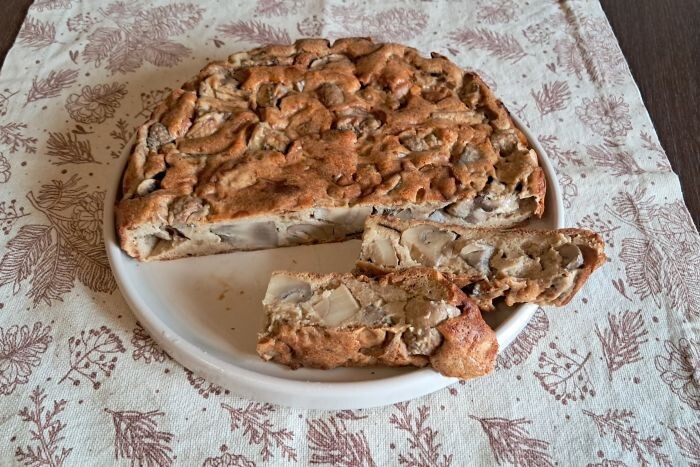 🍄 Начинка. Для начинки нужны всего два ингридиента - ✅ шампиньоны (5-10 штук в зависимости от размера) и ✅ репчатый лук (одна штука). Лук режем и поджариваем на растительном масле Добавляем крупно порезанные грибы. ✅ Солим, перчим. Поджариваем до готовности или чуть-чуть не до готовности 🍄 Тесто заливное, довольно жидкое с не большим количеством муки. ✅ 1 яйцо, ✅ 2 ст ложки сметаны, ✅ соль, ✅ 1 ч ложка соды (без горки) или 10 гр разрыхлителя. Все хорошо смешать ✅ 2 ст ложки растительного масла (чуть не забыла) ✅ 100 гр цельнозерновой муки 🍄 Выпекание Смешиваем начинку с тестом Выливаем тесто (оно реально жидкое) в форму. Я беру разъемную и, чтобы тесто не вытекало, выстилаю ее пекарской бумагой, смазанной маслом ⏰ Выпекаем 40 минут при температуре 180 градусов Самый вкусный этот пирог, когда уже не горячий, но еще не до конца остыл, т.е. теплый