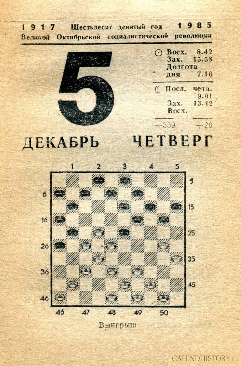 Листок советского отрывного календаря 40-летней давности 5 декабря 1985-го года — Календарь Политиздата Выигрыш Больше старых советских отрывных календарей смотрите у нас на сайте - calendhistory.ru https://calendhistory.ru/5-dekabrja-1985-go-goda-kalendar-politizdata/