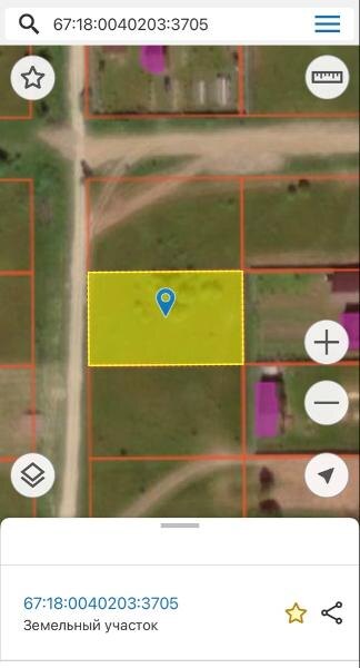 Название: Земельный участок с кадастровым номером 67:18:0040203:3705 площадью 1500 кв.м., относящийся к категории земель населенных пунктов