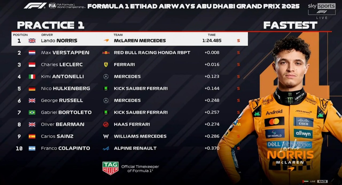 Результаты первой практики гран-при Абу-Даби