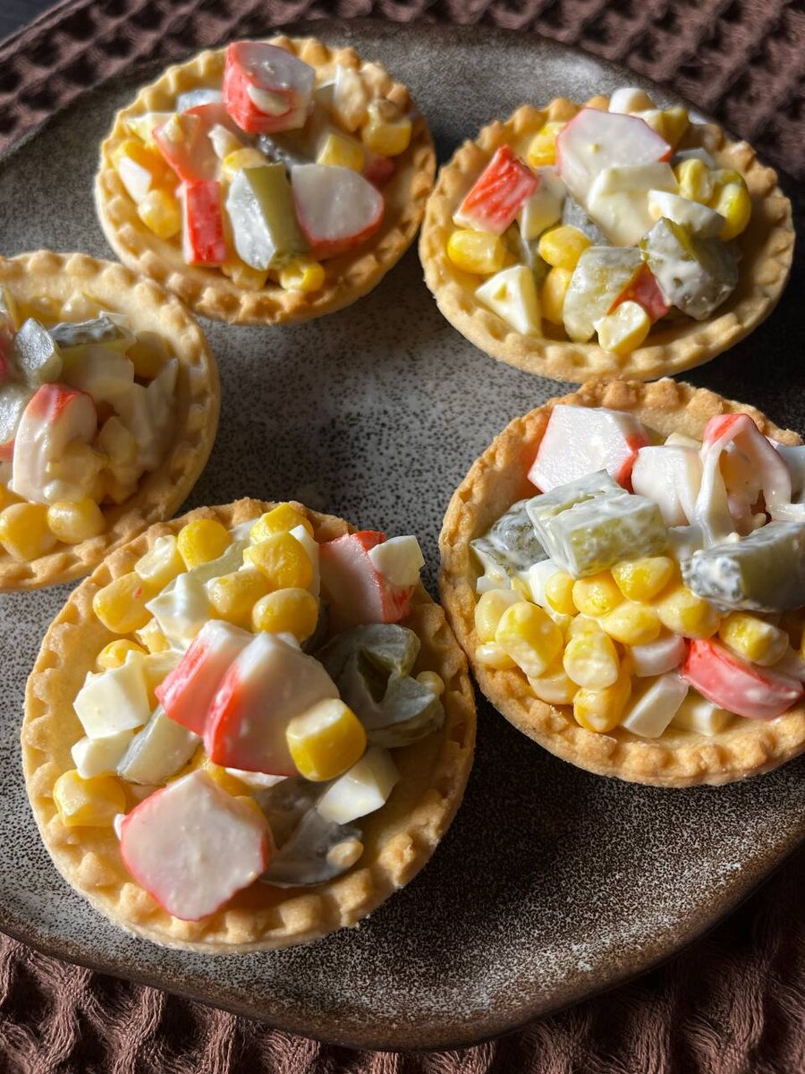 Сколько рецептов крабового салата вы уже видели за последние дни, недели, месяцы? Наверное, штук 15 точно🤣 Если любите кулинарию и смотрите видео в соцсетях — этот салат вас преследует везде. Но у меня есть один секретный ингредиент. И один ингредиент, который я принципиально никогда не добавляю. Секретный ингредиент — солёные огурцы. Именно солёные, не маринованные. Их можно найти в Metro, в Перекрёстке — просто выберите именно солёные. А вот то, что я не люблю в крабовом салате — это рис 🤢 Ингредиенты: • упаковка крабовых палочек • банка кукурузы • два яйца • 3–4 солёных огурца (лучше покрупнее) • майонез для заправки Как готовить: • Нарезаем все ингредиенты. • Добавляем кукурузу, яйца, солёные огурцы. • Заправляем майонезом. • Перемешиваем и подаём. В этот раз я подала салат в тарталетках — и это идеальная подача, если у вас намечается фуршетный новогодний стол. Это как раз тот случай, когда вы не хотите весь вечер сидеть, а хотите разговаривать, танцевать или играть в настолки