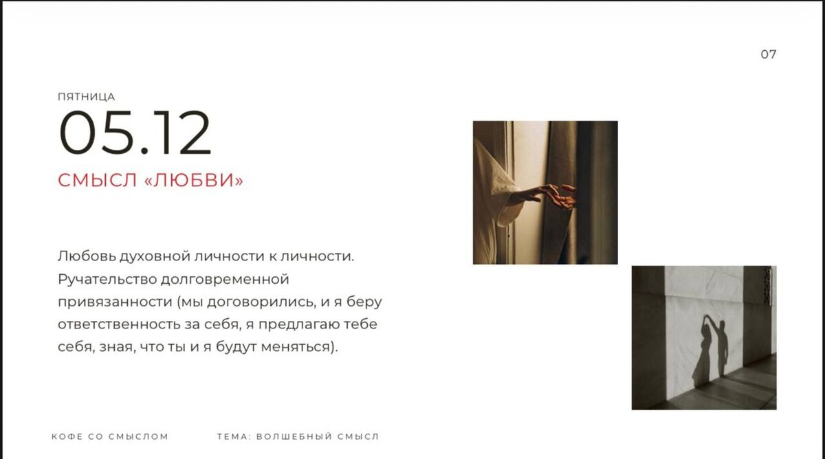 В проекте «Кофе со смыслом» мы используем методику дерефеклексии. Так как сегодня была тема - любовь (на фото слайд из презентации), то задание было ⬇️ Где в вашей жизни любовь 🍰? (можно фото и/ или текст) Вы тоже можете прислать мне в комментариях выполненную практику 🫶🏻