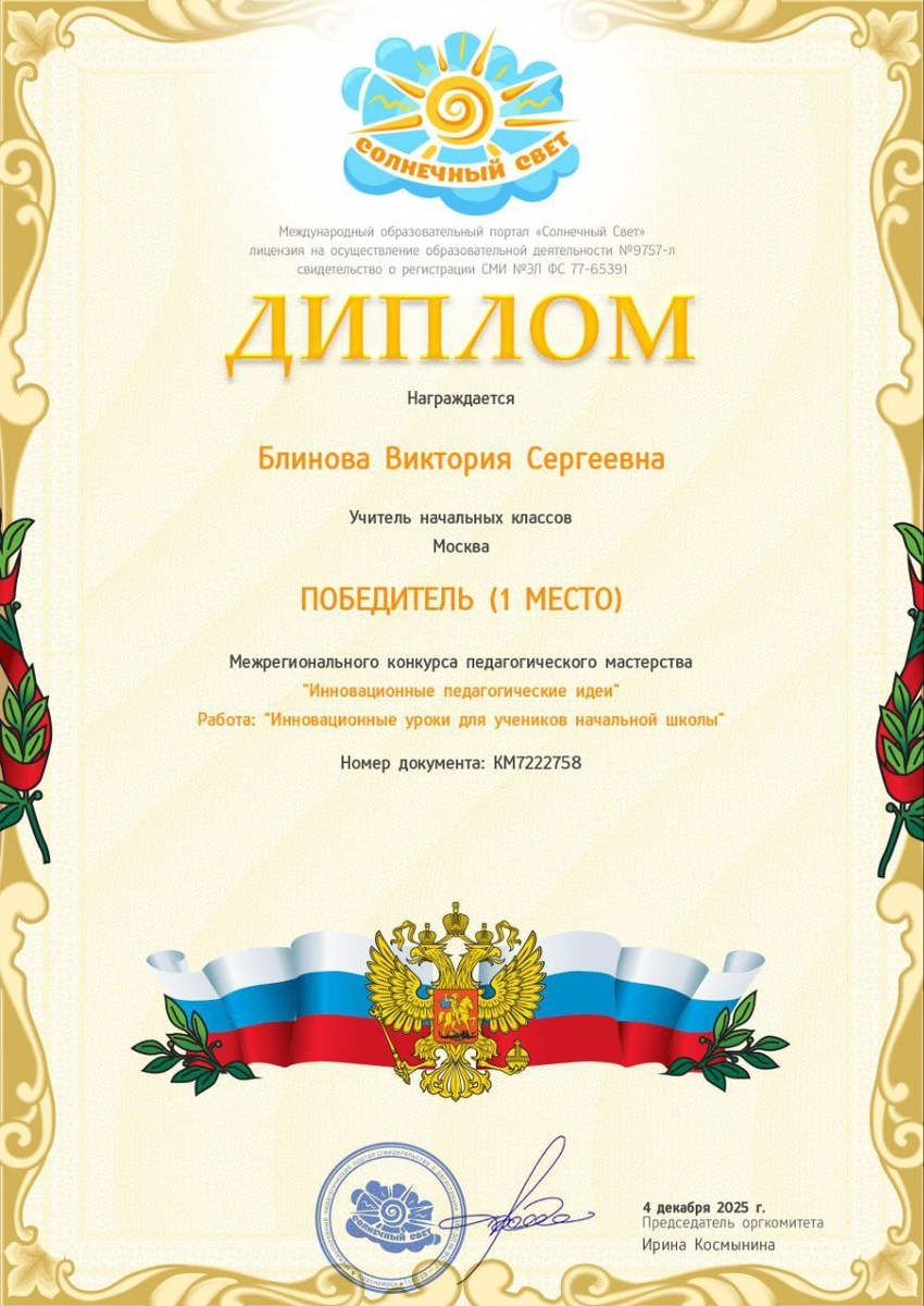 Ура! Диплом за 1 место в инновационной теме. #диплом