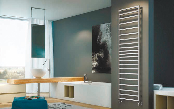 - Нержавеющая сталь. Полотенцесушители не подвергаются коррозии, с высокой теплоотдачей, прогревают ванную комнату, имеют долгий срок эксплуатации. Есть окрашенные модели, покрытые хромом или отполированные.