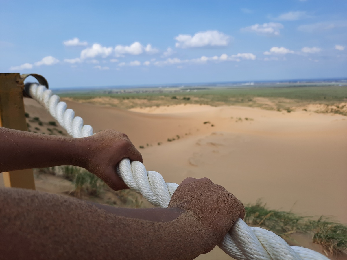 Хотим поделиться с вами историей нашего знакомства с одним из самых удивительных мест на земле — барханом Сарыкум в Дагестане. Знаете, бывают такие моменты, когда понимаешь: «Вот оно!» — и душа наполняется каким-то необъяснимым трепетом. Именно так случилось с нами, когда мы впервые ступили на золотой песок Сарыкума. А кто такие мы: Спросите вы? Мы, это Олег и Наташа, семейная пара блогеров- Автобродяги, и сегодня хотим рассказать вам о нашем путешествии к одному из самых удивительных мест Дагестана — бархану Сарыкум. Это было настоящее открытие для нас обоих, и мы надеемся, что наш рассказ вдохновит и вас на подобные приключения! В то путешествие с нами ездили ещё наши дети и внуки, но а самый отважный из них, Сашка, прошел с нами весь путь посещения бархана. Что это за зверь такой? Итак, начнём с азов. Бархан Сарыкум — это огромная песчаная гора, расположенная всего в 18 километрах от Махачкалы. Представляете, посреди зелёной степи внезапно возникает настоящая пустыня! Размеры в