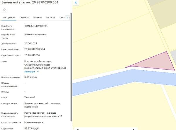 Название: Земельный участок с кадастровым номером 26:28:010206:504 площадь 6895 по адресу Российская Федерация, Ставропольский край