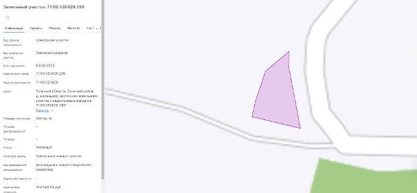 Название: продажа земельного участка из земель населенных пунктов с кадастровым номером 71:09:020429:299, площадью 363 кв