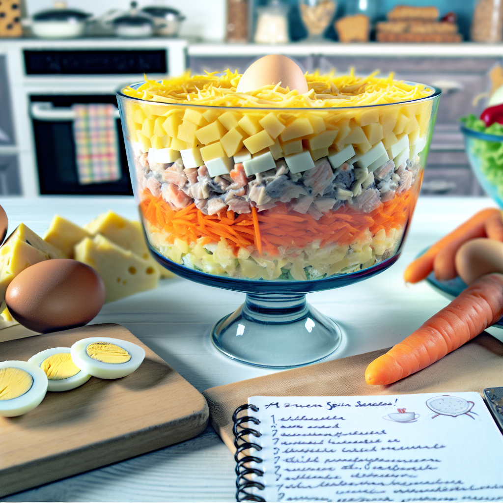 Салат "Мимоза" по-новому: гости всегда просят рецепт Кто из нас не вспоминал с любовью о классическом салате "Мимоза"? Этот нежный и воздушный слоистый шедевр уже долгие годы является неизменным фаворитом на праздничном столе. Но что если добавить ему немного современности, сохранив при этом его уникальную текстуру и вкус? Сегодня мы представляем вам обновленный взгляд на "Мимозу", который неизменно вызывает восторг у гостей. Главное правило приготовления любой версии "Мимозы" — это правильно организованные слои. Здесь важна каждая деталь, чтобы итоговый вкус получился сбалансированным и насыщенным. Основное отличие нашего рецепта — добавление новых компонентов, способных придать классическому блюду свежий и запоминающийся вкус. Для приготовления обновленного салата "Мимоза" вам понадобятся следующие ингредиенты: - Консервированная форель или лосось — это деликатесное обновление сделает вкус салата более глубоким и интересным. - Твердый сыр — добавит нежную сливочную нотку, котора