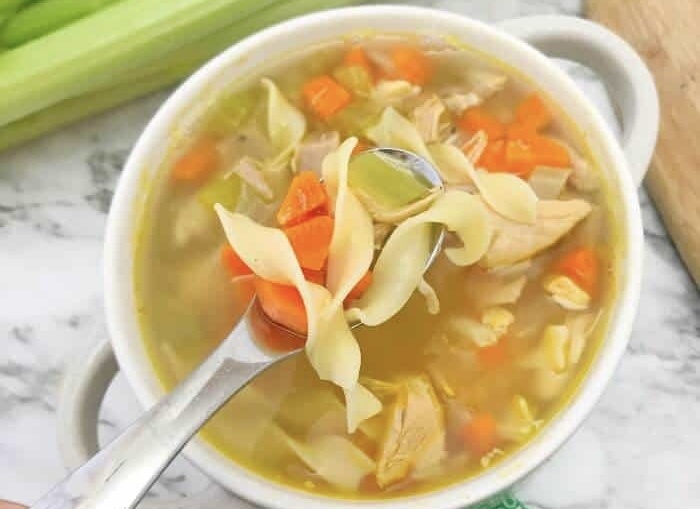 1. Куриный суп с вермишелькой-звездочками и яркими овощами