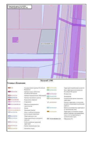 Название: Земельный участок с условным номером 59:12:0430000:ЗУ1, площадь - 1822кв.м, вид разрешенного использования - Для ведения личного