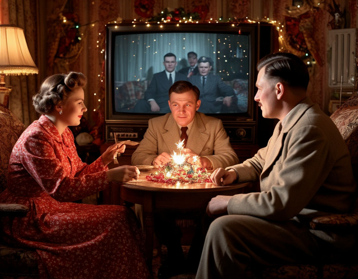 В этот момент из своей комнаты вышел Николай. Он молча подошёл к радиоточке, нашёл тонкую проволочку — антенну — и слегка дёрнул её. В тарелке что-то щёлкнуло, и голоса дикторов потонули в шипении и треске, словно они внезапно заговорили с Марса.