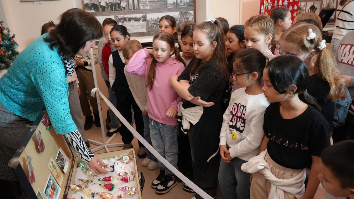 Новогоднее путешествие в прошлое совершили школьники г.о. Люберцы 🎄В Культурно‑эстетическом центре Дзержинского в рамках программы «Культура для школьников» ученики второго класса лицея №3 им. главного маршала авиации А.Е. Голованова посетили выставку «Новогодние игрушки наших бабушек». Ребята познакомились с реликвиями, хранящими дух праздничных традиций минувших десятилетий. Центральным экспонатом стала гирлянда 1950‑х годов. Каждая ее лампочка — маленькое произведение искусства: фигурки собачки, попугая, грибочка, машинки расписаны вручную. Но главное — гирлянда сохранилась в рабочем состоянии. При включении ожившие старинные фигурки переносят в новогоднюю атмосферу середины XX века. В экспозиции также представлены и другие экспонаты, охватывающие период с конца 1930‑х до 1960‑х годов. Среди них — скромные картонажные игрушки военного времени, монтажные сборные украшения и бусы, ватные игрушки, а также тематические фигурки, выпущенные к знаковым событиям: юбилею А.С. Пушкина,