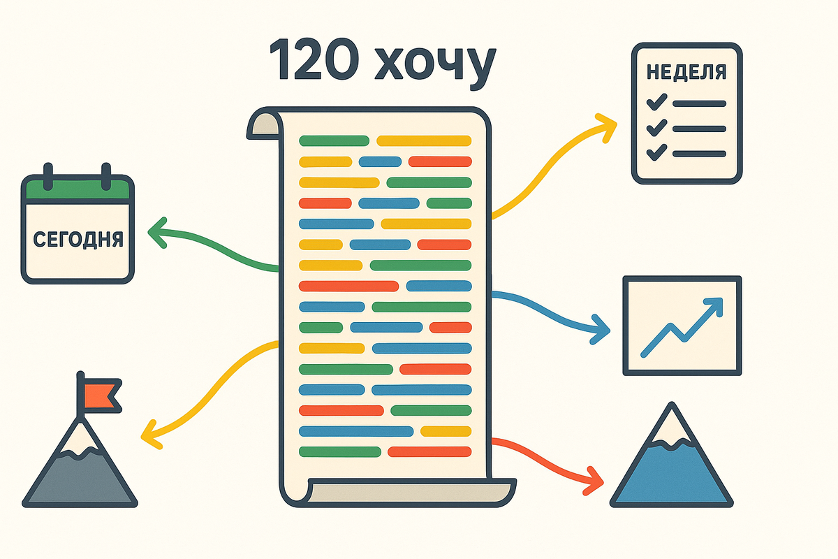Бывало ли у вас чувство, что годы проходят, а заветные «когда-нибудь» так и остаются мечтами? Вы записываете задачи на неделю, но забываете о желаниях на всю жизнь? Ваша голова полна идей, от «выучить язык» до «побывать в Японии», но они хаотично носятся в мыслях, не находя выхода. Что если бы существовал простой способ не просто собрать все эти хочу в одном месте, но и начать по-настоящему двигаться к ним? Метод, который превращает смутные мечты в конкретные пункты личного плана, становится компасом в потоке дней.