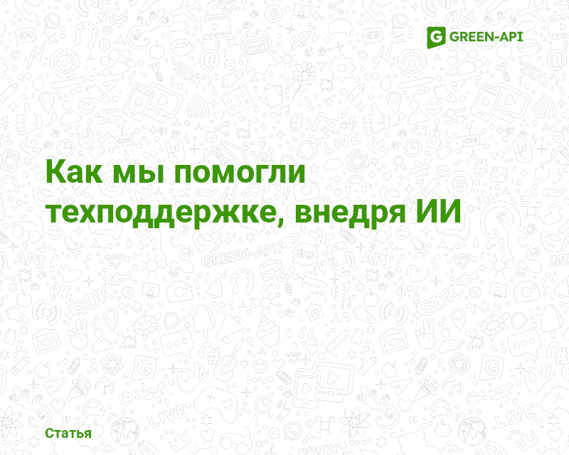 Содержание Что было сделано Как это работает Ключевые улучшения Заключение Что было сделано В уходящем году команда GREEN-API внедрила нейросеть ChatGPT в свою систему обработки запросов HelpDeskEddy с целью сделать работу службы поддержки быстрее и удобнее. Теперь часть обращений клиентов обрабатывается автоматически, что позволяет разгрузить операторов и ускорить ответы. После внедрения ИИ около 40% стандартных запросов можно решать без участия человека, освобождая сотрудников для более сложных задач. Как это работает Ранее наши операторы сталкивались с множеством однотипных вопросов, например, как настроить интеграцию, где найти нужные настройки или как исправить стандартные ошибки. ChatGPT взял на себя обработку этих рутинных запросов и мгновенно отвечает пользователям. Перед тем как начать общение система сразу сообщает, что с клиентом ведет диалог нейросеть. Такой подход помогает пользователю понимать, что ответы формируются автоматически и иногда могут требовать уточнения, а пр