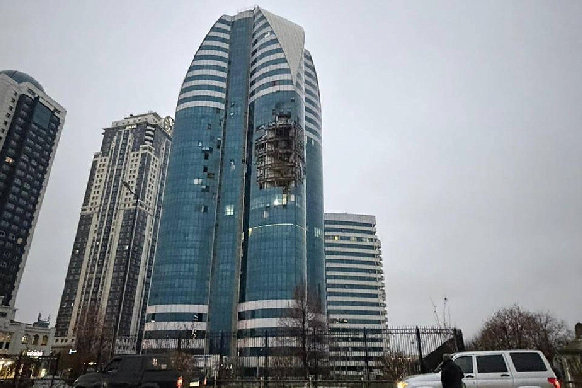 Инцидент произошёл в 28-этажном бизнес-центре, расположенном примерно в 800 метрах от официальной резиденции главы Чечни. В здании, по данным картографических