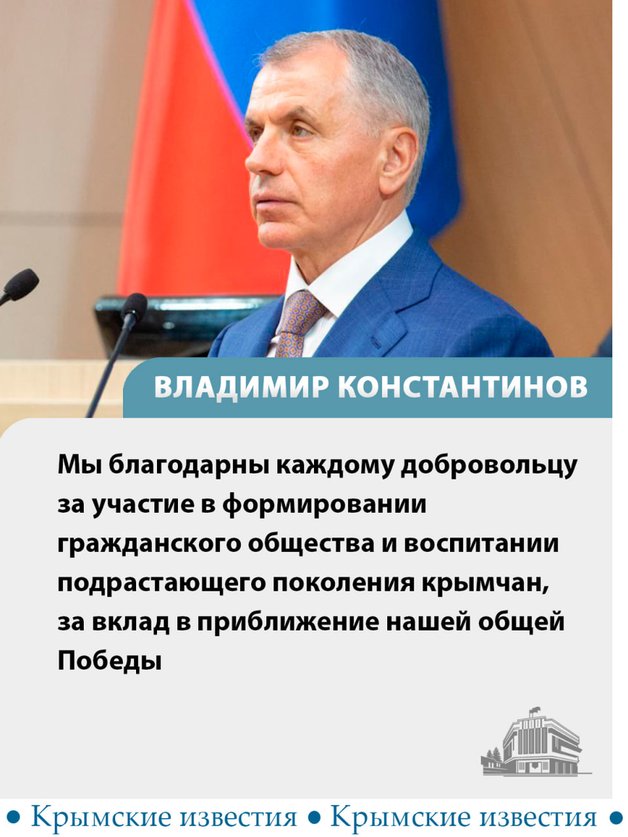 🤝 360 волонтёрских объединений работают в Крыму. За год их число выросло на 160. В республике сегодня отмечают День добровольца. Это праздник людей, готовых прийти на помощь и проявить заботу о ближних. Волонтёрское движение республики объединяет десятки тысяч жителей разных возрастов, заявил Владимир Константинов. Крымские известия. Больше новостей Telegram | ВКонтакте | Одноклассники