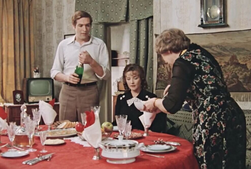 Приготовьте вкусную закуску и вы. Если «Оливье» — это проходной универсал для любого советского праздника и готовят его круглый год, то салат «Столичный» — его аристократичный, слегка высокомерный родственник. Тот самый, что появлялся на столах нечасто, зато всегда по серьёзному поводу. Например, чтобы произвести впечатление на будущую невестку, которая, между прочим, простая рабочая девушка из общежития. Именно этот момент Владимир Меньшов и демонстрирует в сцене визита Катерины к родителям Родиона в драме «Москва слезам не верит». Пока отец разливает коньяк и читает мораль о важности «твёрдой мужской руки», мать действует тоньше. Её оружие спрятано в салатнице, оно намекает о статусе семьи, их предпочтениях. В основе — не докторская колбаса, а говяжий язык. Продукт в СССР не то чтобы недоступный, но требующий и связей, и времени на готовку. Рецепт, впрочем, не был секретом Полишинеля. «Столичный» — это та самая классическая овощно-яичная основа «Оливье», где варёная колбаса или мясо