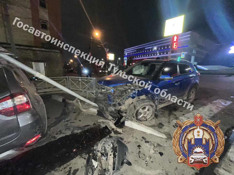 В результате дорожно-транспортного происшествия на улице Демидовской 4 декабря вечером пострадали два человека. В больницу с травмами доставлены водитель и пассажирка автомобиля Hyundai Creta. По информации ГАИ Тульской области, авария произошла около 20:50. Водитель автомобиля Volkswagen Passat, совершая поворот налево, не уступил дорогу, что привело к столкновению с Hyundai. От удара Hyundai вынесло на обочину, где машина сбила опору дорожного знака, а затем врезалась в припаркованный внедорожник Nissan Terrano. После оказания необходимой помощи в медучреждении обоих пострадавших отпустили.