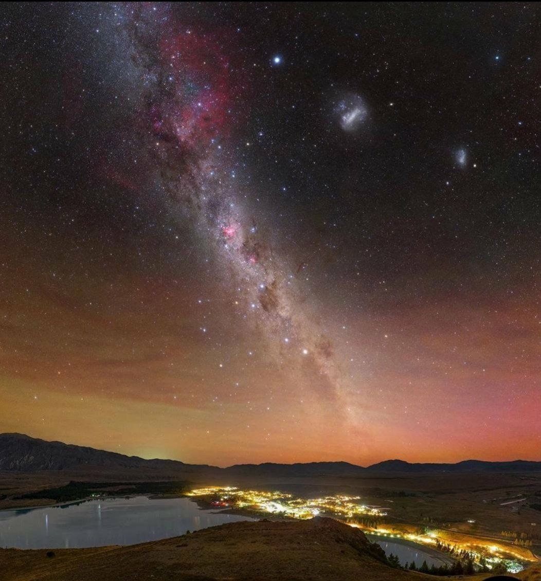 Млечный Путь и Магеллановы облака в небе Южного полушария Земли (Новая Зеландия). "Открылась бездна, звезд полна; Звездам числа нет, бездне - дна." (М. В. Ломоносов, "Вечернее размышление о Божием величестве", 1743 год) #будни #чужаямудрость